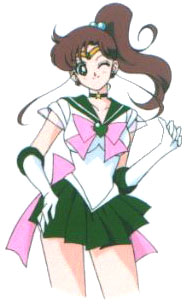 Kino Makoto, also known as Sailor Jupiter or in the North American version, Lita, is the complete opposite of the clichè, "Think before you act." She often jumps to conclusions and rather than trying to figure things out, she favors the use of violence. However, as a result of her incredible strength, her attack is probably the most distructive out of all the inner scouts. |