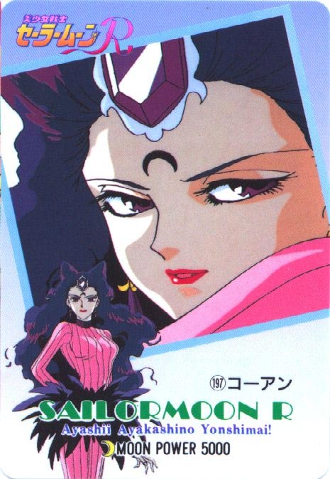 Catsy is the most vain of the Four Negamoon Sisters and rarely even physically fights with the Scouts. Normally, she'll use a whole barrage of energy attacks and will stay at a distance. She had a crush on Rubeus and he took advantage of this by using this puppy love to manipulate her. She was turned good when Rubeus had finally gotten angry at her for screwing up again and gave her a powerful energy bomb, big enough to kill everyone nearby, including herself. Sailor Mars, Rey, saw the good in her and Sailor Moon transformed her into a normal human being and they became good friends.