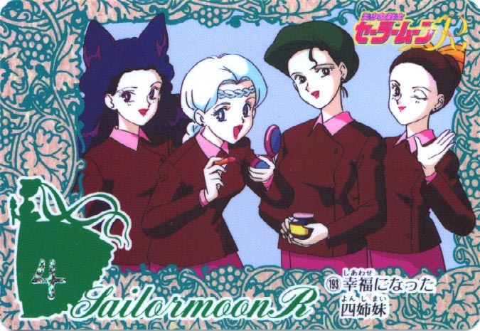 After Alan and Anne were defeated by the Sailor Scouts and Serena and Darien were really starting to realize their love for each other, new enemies arrived from the Dark Negamoon. Led by Rubeus, these four sisters were given the task of turning Crystal Points of future Tokyo into Dark Energy Strongholds in the past.Each of the four sisters possessed different powers. Interestingly enough, some of them even resemble those of the Sailor Scouts. Eventually, however, Sailor Moon and the other Scouts made them realize that leading a life of good is far better then leading a life of evil and hatred.