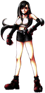 Bright and optimistic. Tifa always cheers up the others when they're down. But don't let her looks fool you, she can decimate almost any enemy with her fists. She is one of the main members of AVALANCHE. She and Cloud were childhood friends, and although she has strong feelings for him, she would never admit it.