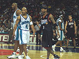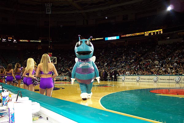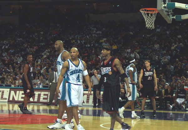 It has been awhile since I've been to a NBA game, so this was a nice treat. With a few courtside tickets, compliments of Coca-Cola, me and my friend, Joe, went off to the Hive on January 17th, 2002 to see the Charlotte Hornets play the Philadelphia 76'ers. Though the Hornets lost to the 76'ers, 93-88, they were still great seats and had a good time.