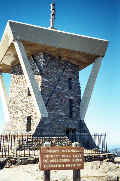 On March 18th, 2001, I took a little mountain drive, which lead me to Mount Mitchell State Park. Named after Dr. Elisha Mitchell, a professor at the University of North Carolina. He first measured the height in 1835. In 1857, Dr. Mitchell set out to verify his measurement of the peak and perished at the foot of a waterfall on the mountain slope. Today, we all know that Mount Mitchell towers at 6,684 feet, making it the highest mountain east of the Mississippi.