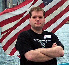 My patriotic pose on the Star of Honolulu. Honolulu, Hawaii ~ February 28, 2006