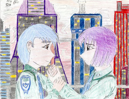 This is one of my Drawings I know its only one but I dont have a scanner Sorry. This pic below I drew on March 98 so its a pretty old one. I did not color this im not good at coloring but I would like to thank Samantha For coloring and Scanning this for me.