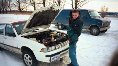 This pic was taken winter 98. It was a very cold day the car jack froze to the ground when we tried to move it after we were done working on the car.