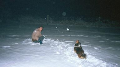 Here is me and my dog (Bella) Playing with the snow.