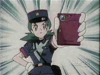 Jenypose.JPG - Officer Jenny holding a Pokedex.