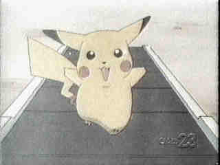 Pikasplt.JPG - Pikachu running on a treadmill.