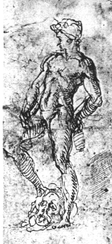 [6] Vasari, G., Cit., p. 1208. That the sketch was for the marble statue and not the Bronze copy, is because in Condivi, A., The Life of Michelangelo, Sedgwick-Wohl, A., tr.), Baton Rouge, Louisiana State University Press, 1976, p. 28. The bronze statues were a copy of the marble and a copy like it only with the head of Goliath below, as he wanted to do. And the sketch varies from Michelangelo's David in other points and not only in the addition of the head to the statue.