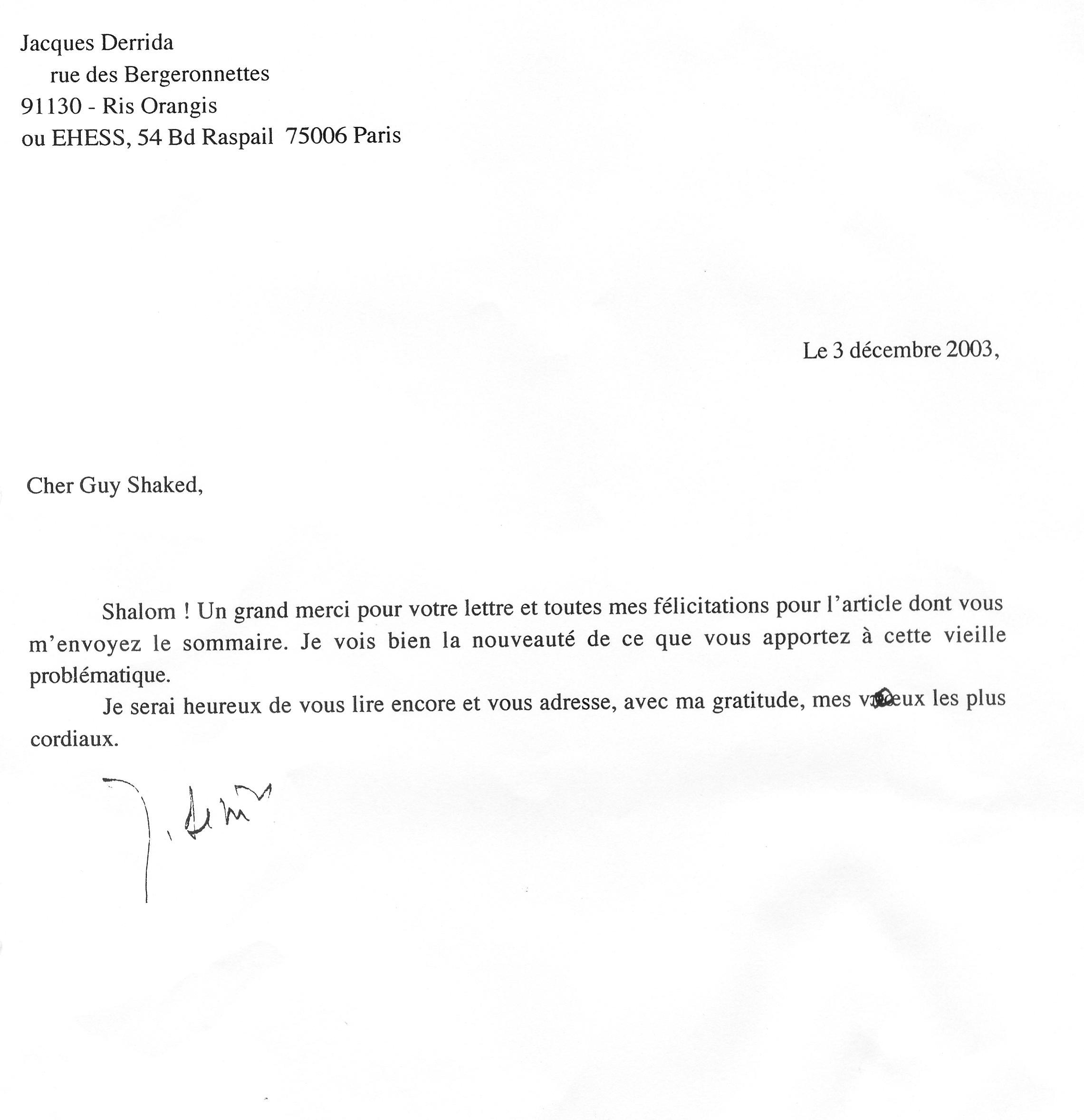 | Prof. Jacques Derrida | I see clearly the innovation that you brought to the ancient problem |